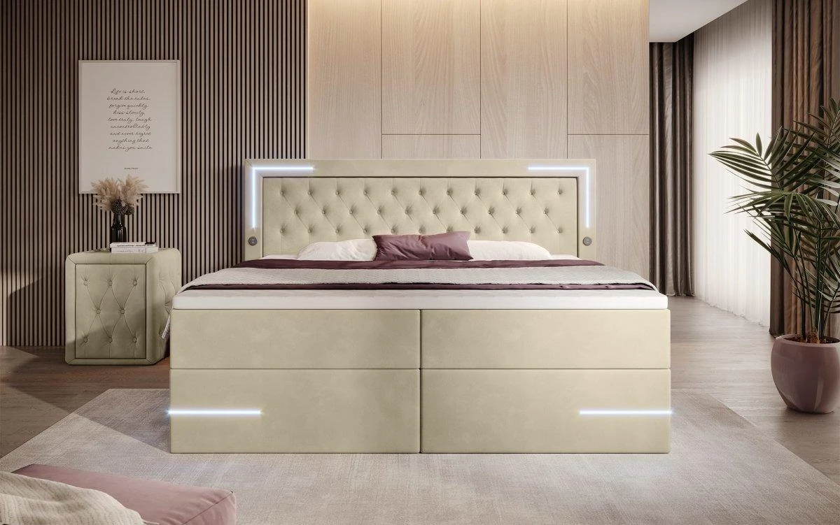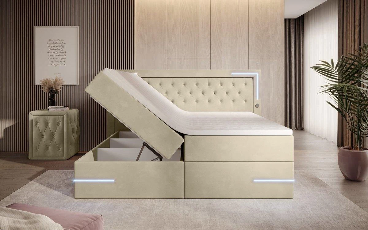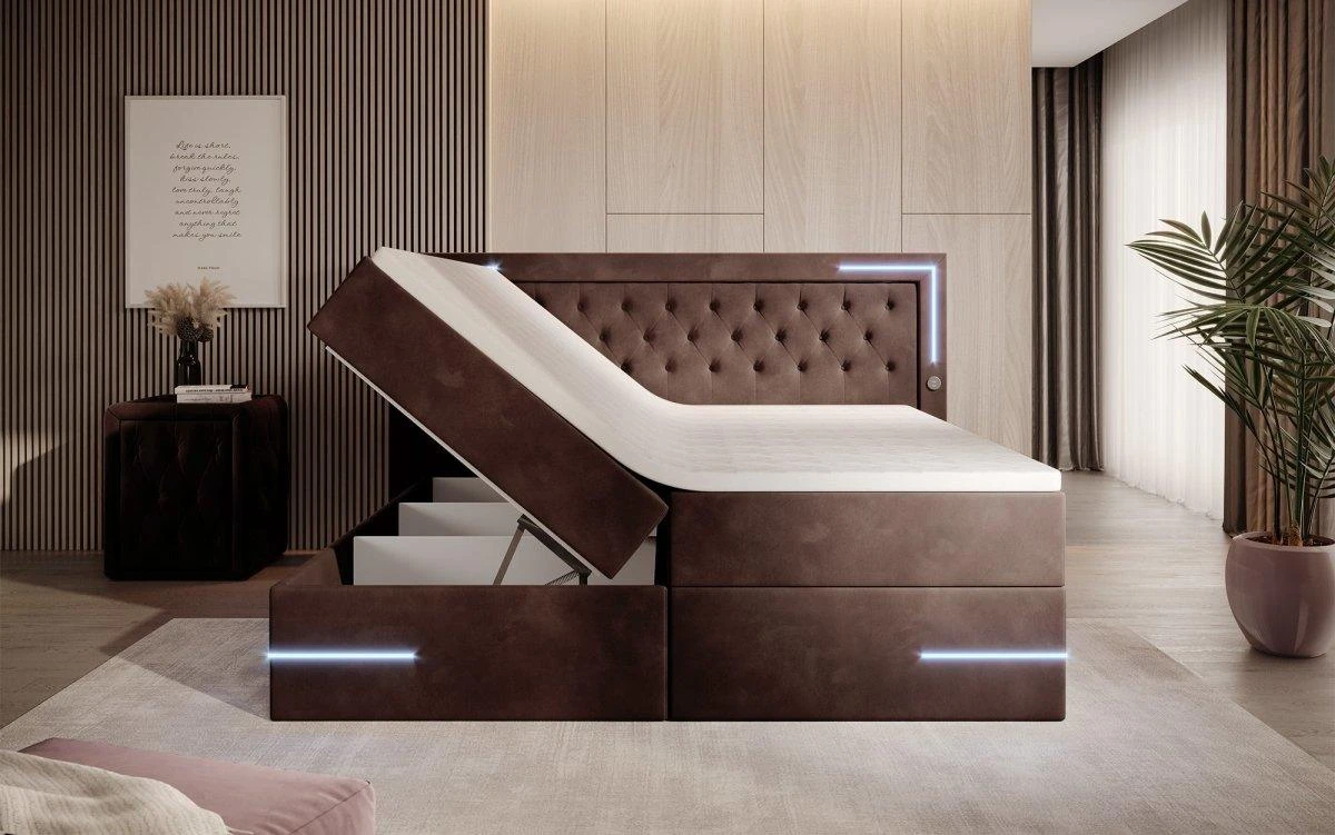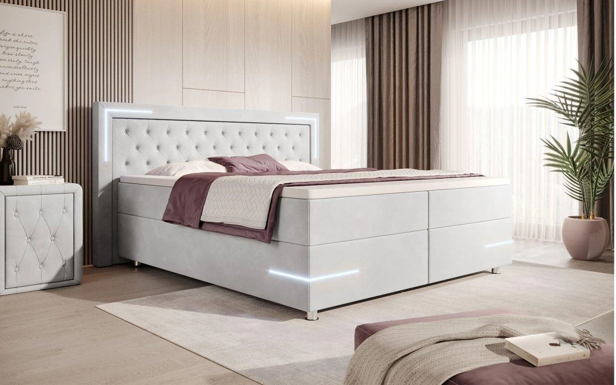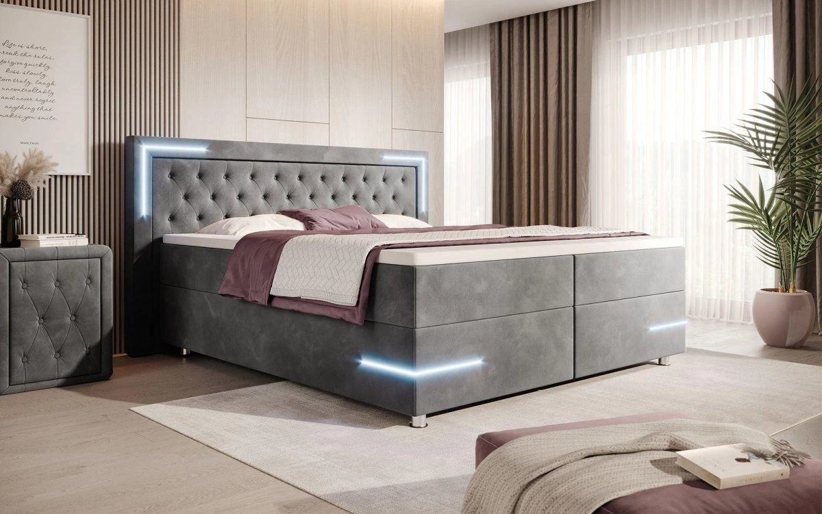 Auf der Suche nach mehr Energie im Alltag bist du hier fündig geworden. Das Bett Verona ist in allen Bereich ein echtes Upgrade: Federkernmatratze, Topper, Samtbezug und LED-Beleuchtung – dein neues Bett bringt alles mit, was die Nacht und auch den Tag in deinem Schlafzimmer perfekt machen. Freue dich auf diese Highlights: