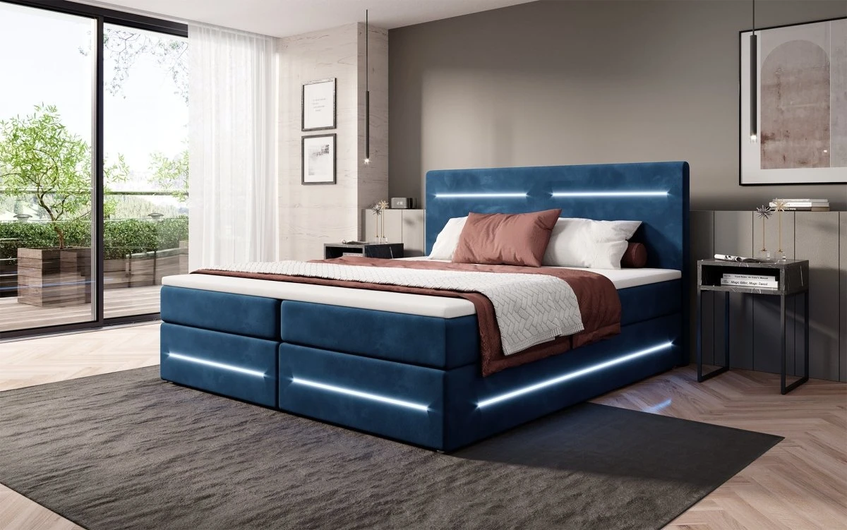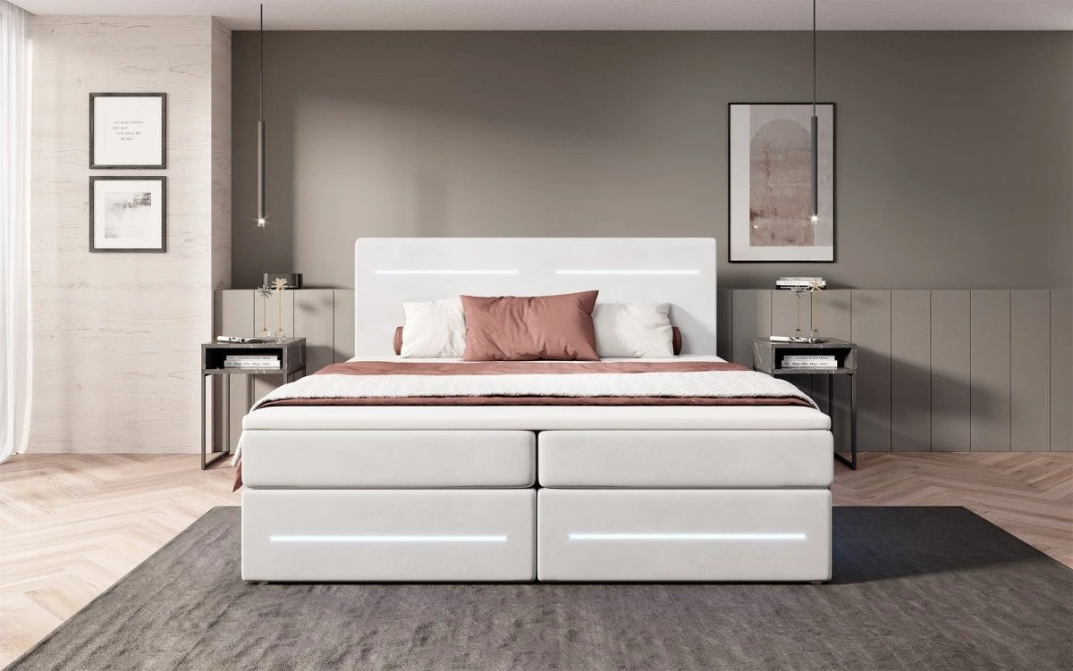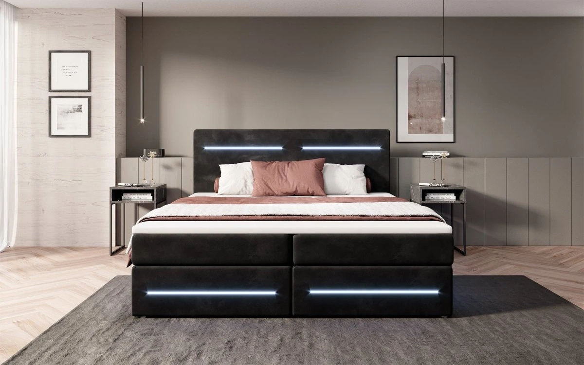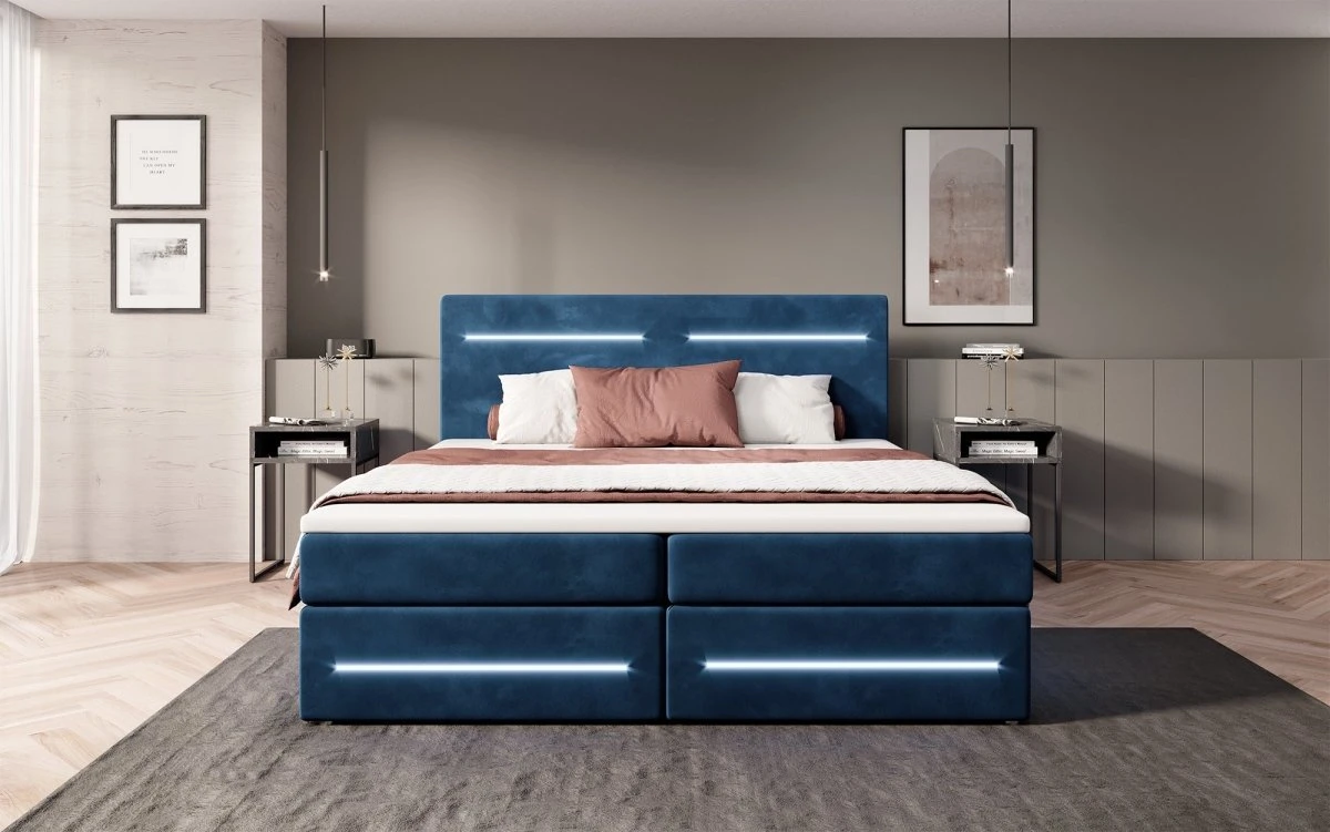 Das Boxspringbett Lara vereint das Beste aus zwei Welten: Die Federkern-Matratze, der Topper und rundum ein Bezug aus Samt garantieren einen Komfort wie auf Wolken. Diese klassischen Merkmale werden von einem praktischen Stauraum und modischen LED-Leisten abgerundet. Diese modernen Lösungen machen deinen Alltag bequemer und besser. Entdecke hier die wichtigsten Vorzüge im Detail: