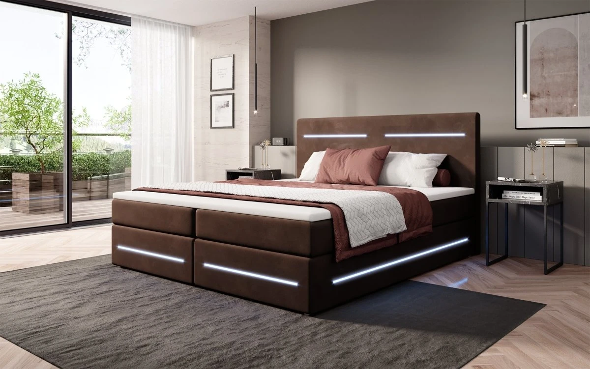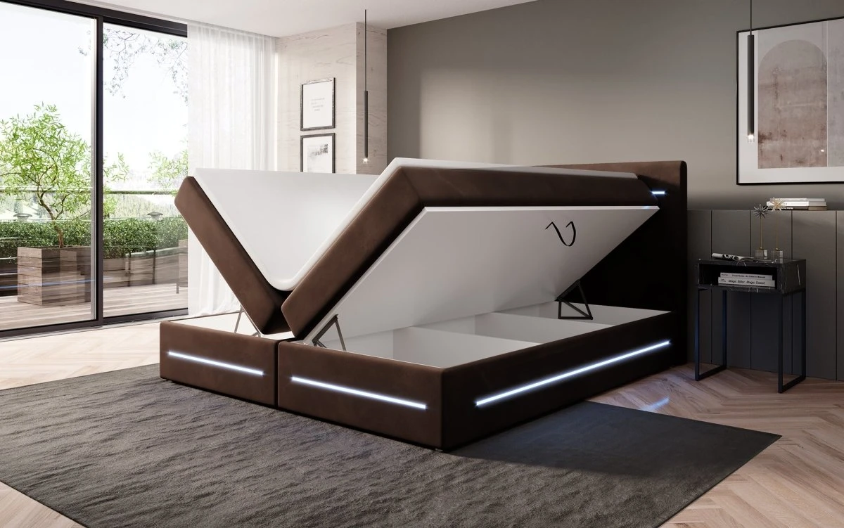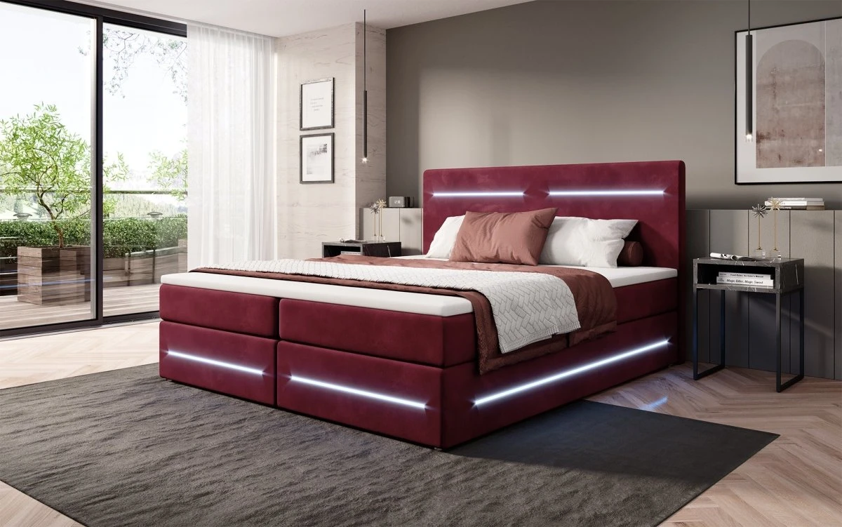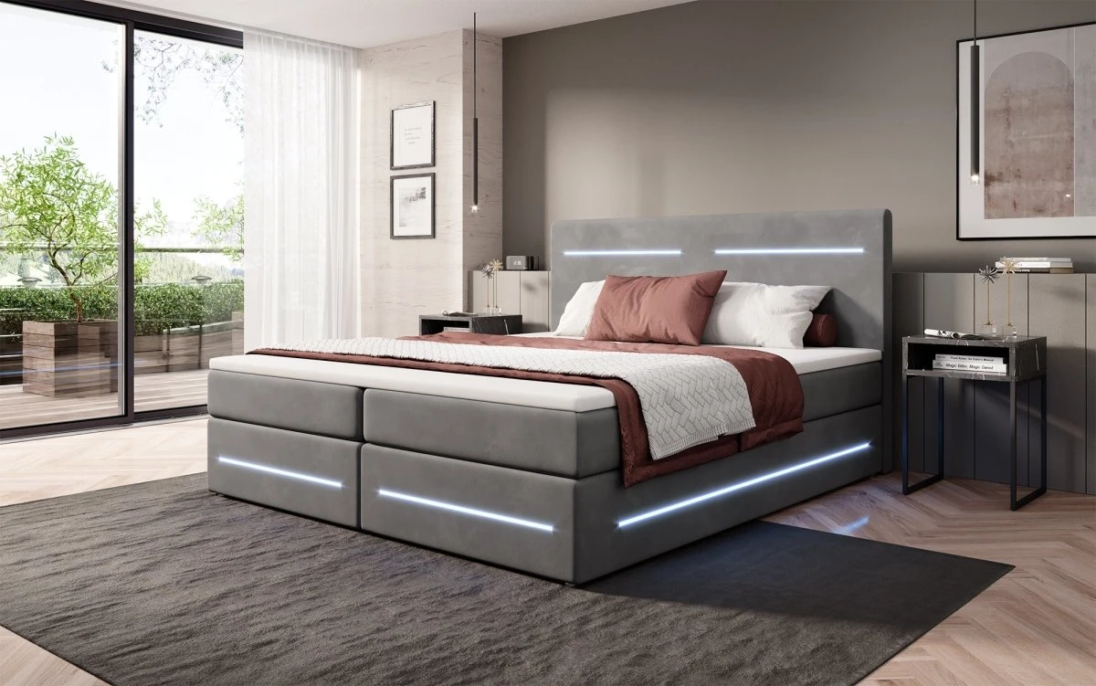 Das Boxspringbett Lara vereint das Beste aus zwei Welten: Die Federkern-Matratze, der Topper und rundum ein Bezug aus Samt garantieren einen Komfort wie auf Wolken. Diese klassischen Merkmale werden von einem praktischen Stauraum und modischen LED-Leisten abgerundet. Diese modernen Lösungen machen deinen Alltag bequemer und besser. Entdecke hier die wichtigsten Vorzüge im Detail: