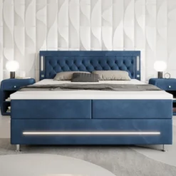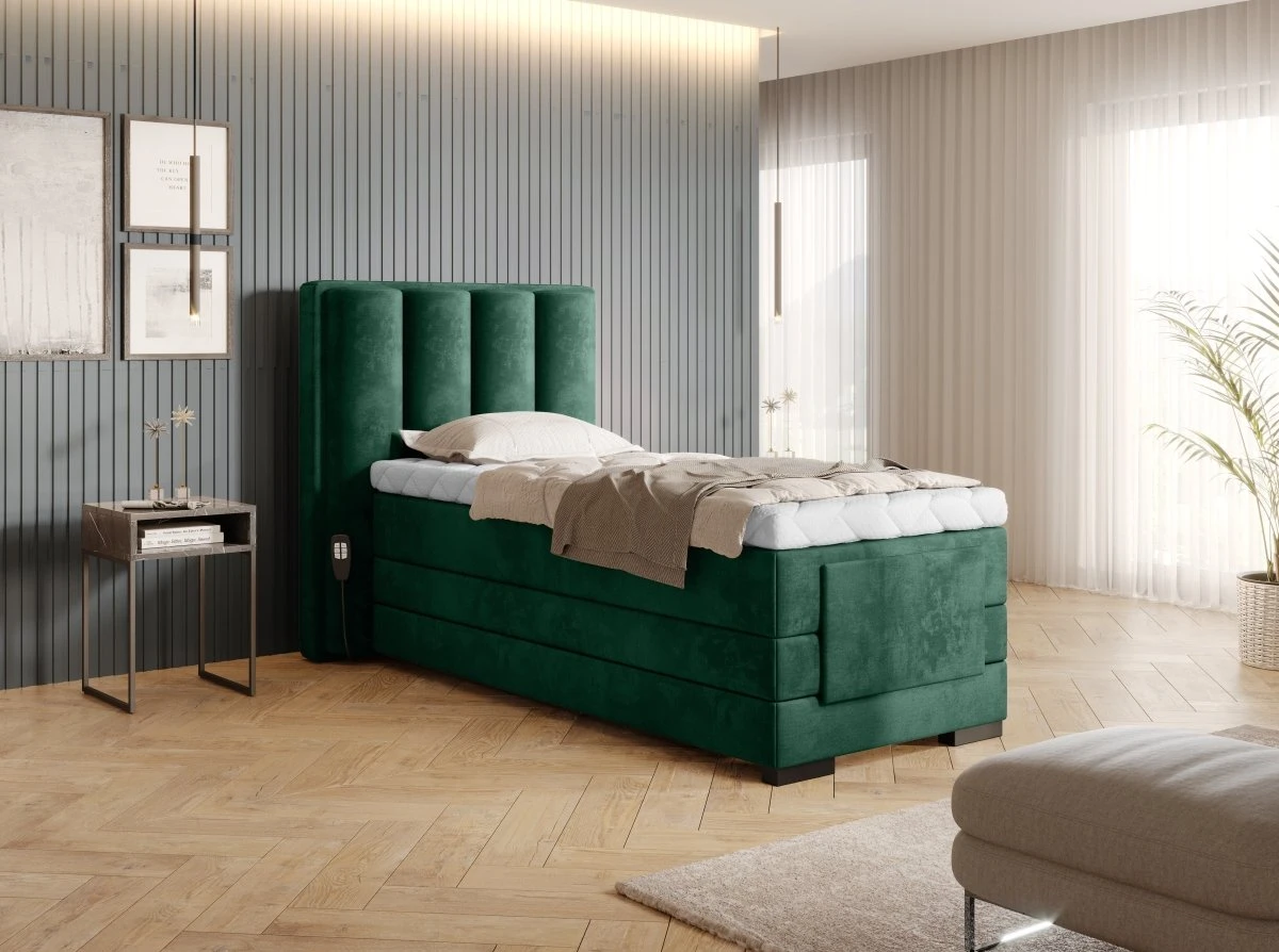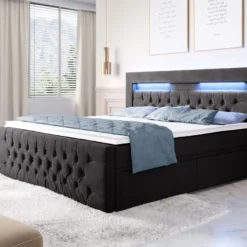 Das Liano-Bett mit seiner gepolsterten Rückenlehne und schwarzen Beinen ist nicht nur funktional, sondern auch ein optischer Hingucker in Samt. Es ist in der Größe 90×200 cm erhältlich, perfekt angepasst für Ihre individuellen Bedürfnisse. Mit dem Liano-Bett verwandeln Sie Ihren Schlaf in ein luxuriöses Erlebnis.