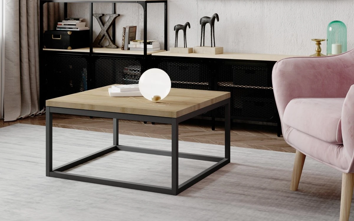 Mit 65 x 65 cm Fläche kann der quadratische Mino Couchtisch als Beistelltisch oder als Zentrum deiner gemütlichen Wohnlandschaft glänzen. Das geschlossene Untergestell aus robustem Stahl verleiht dem Tisch maximale Stabilität und unterstreicht die industrielle Optik. Mit einer Tischhöhe von 36 cm kannst du den Couchtisch auch mit einladenden Sitzkissen oder Strohkissen umrahmen und so eine natürliche Wabi-Sabi-Atmosphäre im Wohnzimmer schaffen. Die 1,8 cm dicke und massive Tischplatte setzt auch große Vasen und Blumengestecke auf der kleinen Fläche stimmig in den Mittelpunkt, ohne die Raumästhetik zu beschweren. Der vielseitige Couchtisch lässt sich mit vielen Einrichtungsstilen kombinieren und ist auch freistehend dekorativ.