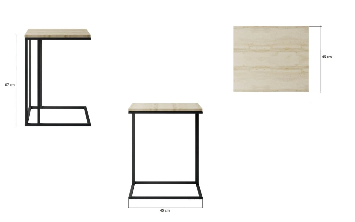 Die simple Konstruktion des Couchtisches Velio zeichnet sich durch den filigranen Stahlfuß aus. Dieser sorgt für ein leichtes Gewicht von nur 7 Kg. Durch die besondere Form lässt sich der Couchtisch nicht nur neben deinem Sofa wunderbar platzieren, sondern macht sich auch alleinstehend oder neben deinem Sessel zu einem Hingucker. Auf dem Metallgestellt liegt die 1,6 cm dicke Tischplatte mit den Maßen 45 cm x 45 cm. Der Couchtisch ist 67 cm hoch und unterscheidet sich damit zu anderen Couchtischen, die wesetlich niedriger sind.
