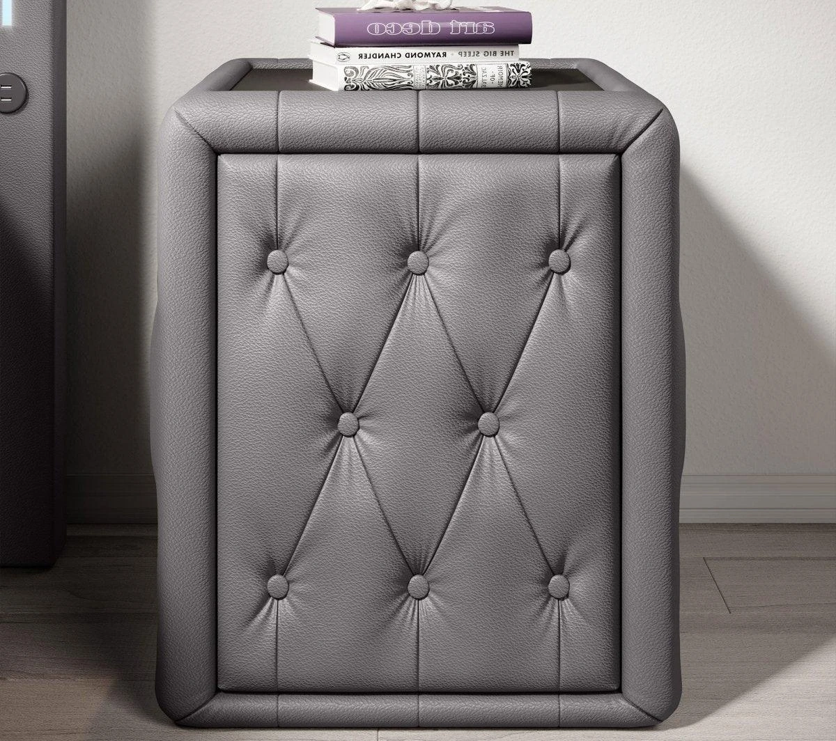 Dieses Modell begeistert nicht nur durch den praktischen Stauraum, sondern vor allem durch seine hochwertige Haptik. Der Nachttisch mit einem Bezug aus Kunstlederundeinem Schubkasten im edlen Chesterfield-Look passt perfekt zu den Boxspringbetten: Mit 65 cm Höhe schließt er bündig auf Höhe der Matratze an. Außerdem gibt es den Überzugaus Kunstleder in vier verschiedenen Farben. So kannst du entweder einen bewussten Farbakzent setzen, oder dein neues Schlafzimmer einheitlich in deine Lieblingsfarbe tauchen.