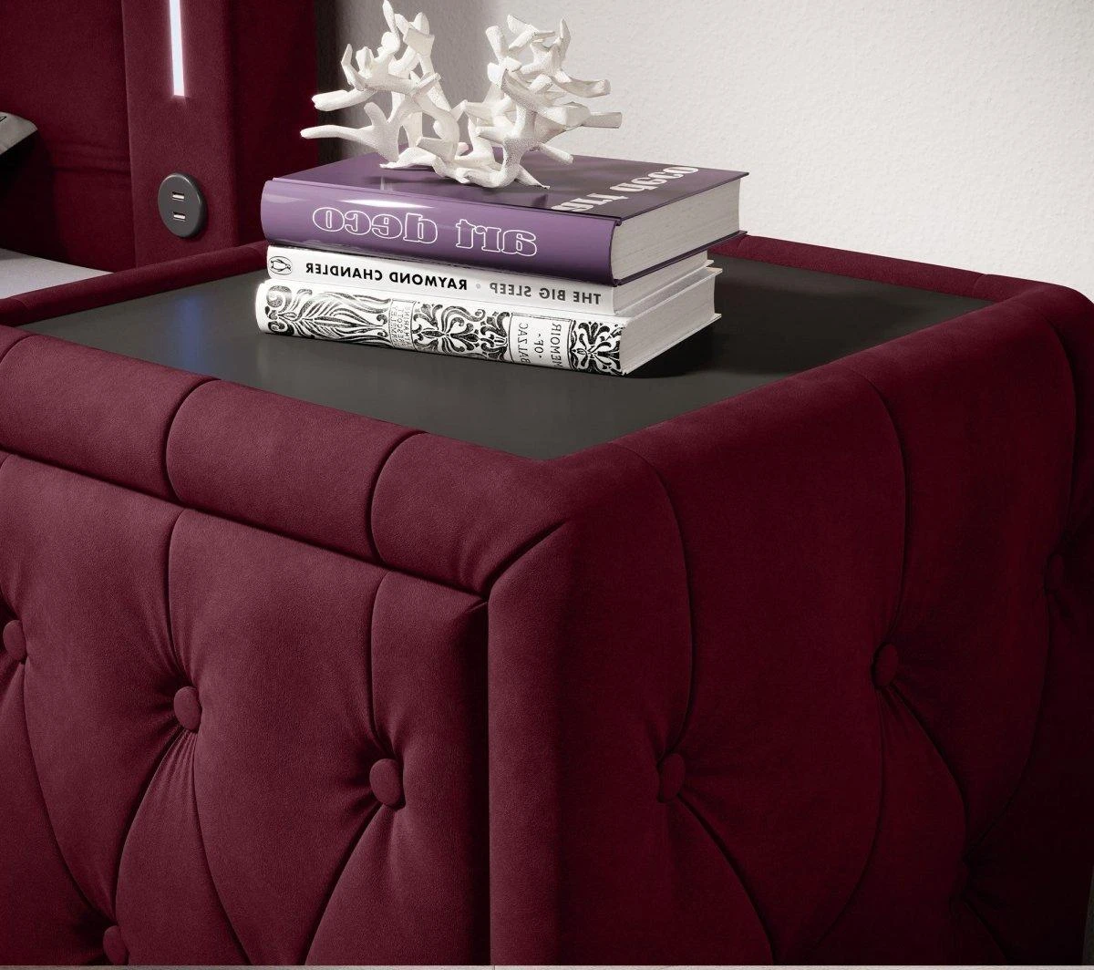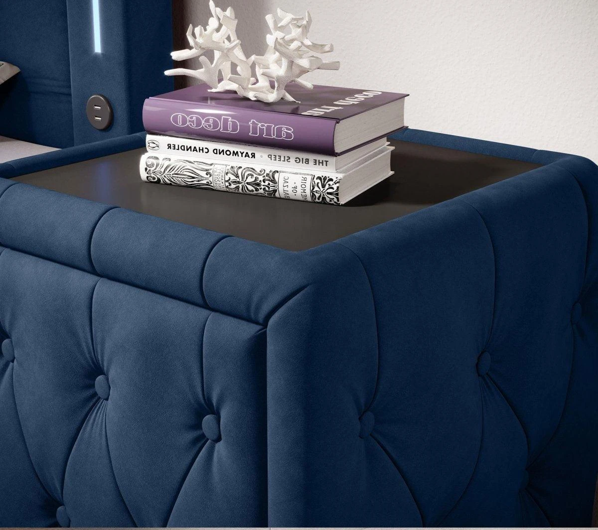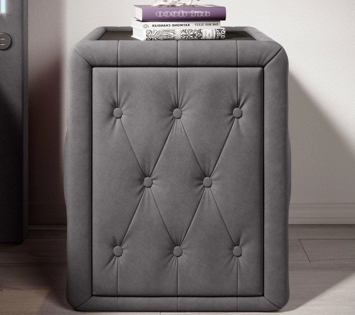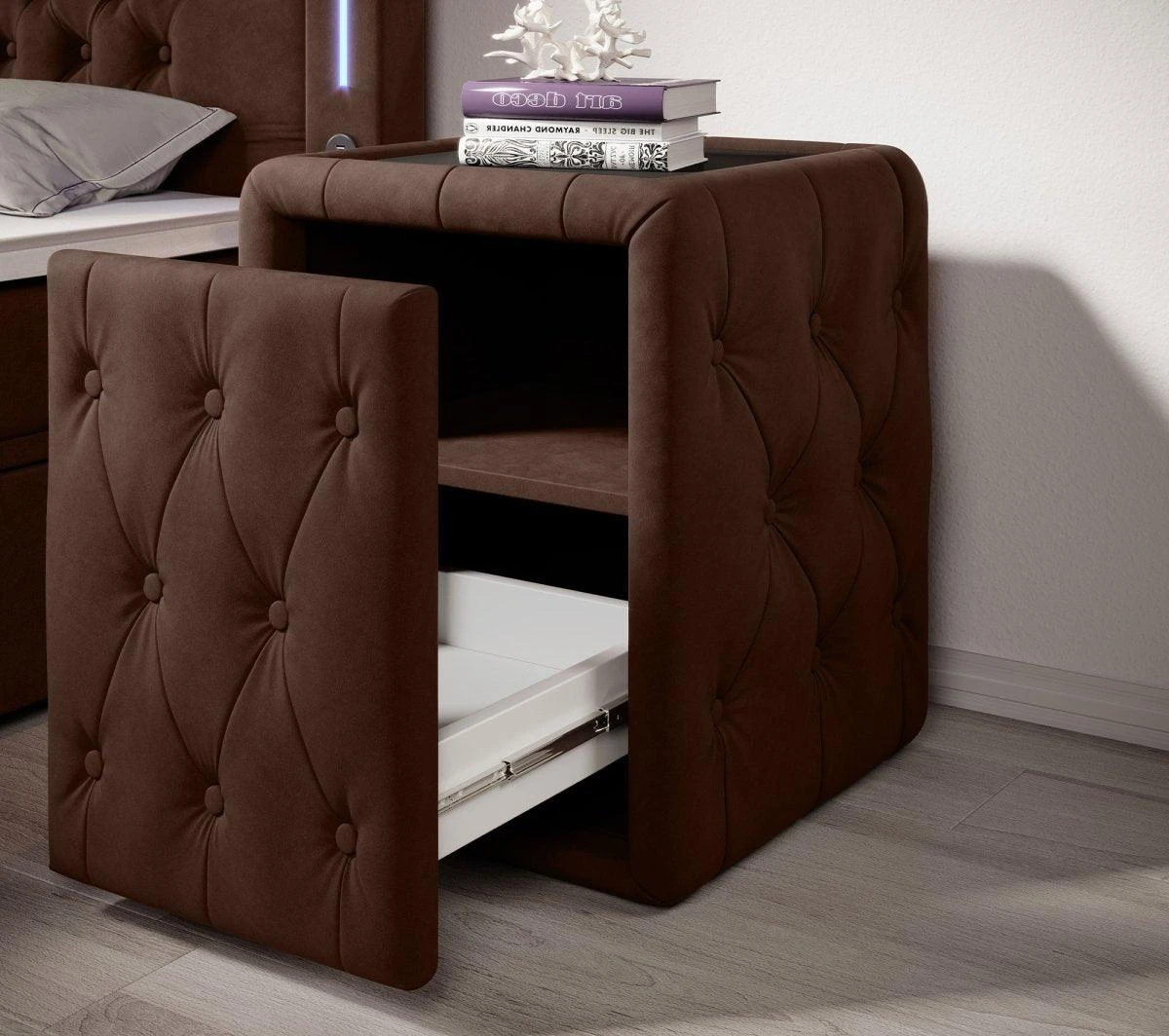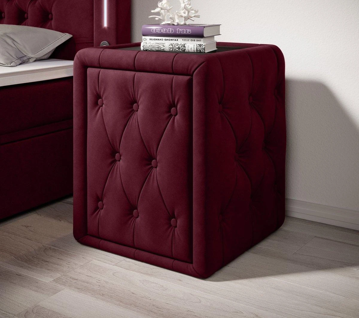 Der Nachttisch in Samt Optik mit einem Schubkasten im edlen Chesterfield-Look passt perfekt zu den Boxspringbetten:  Mit ca. 65 cm Höhe schließt er bündig auf Höhe der Matratze an.