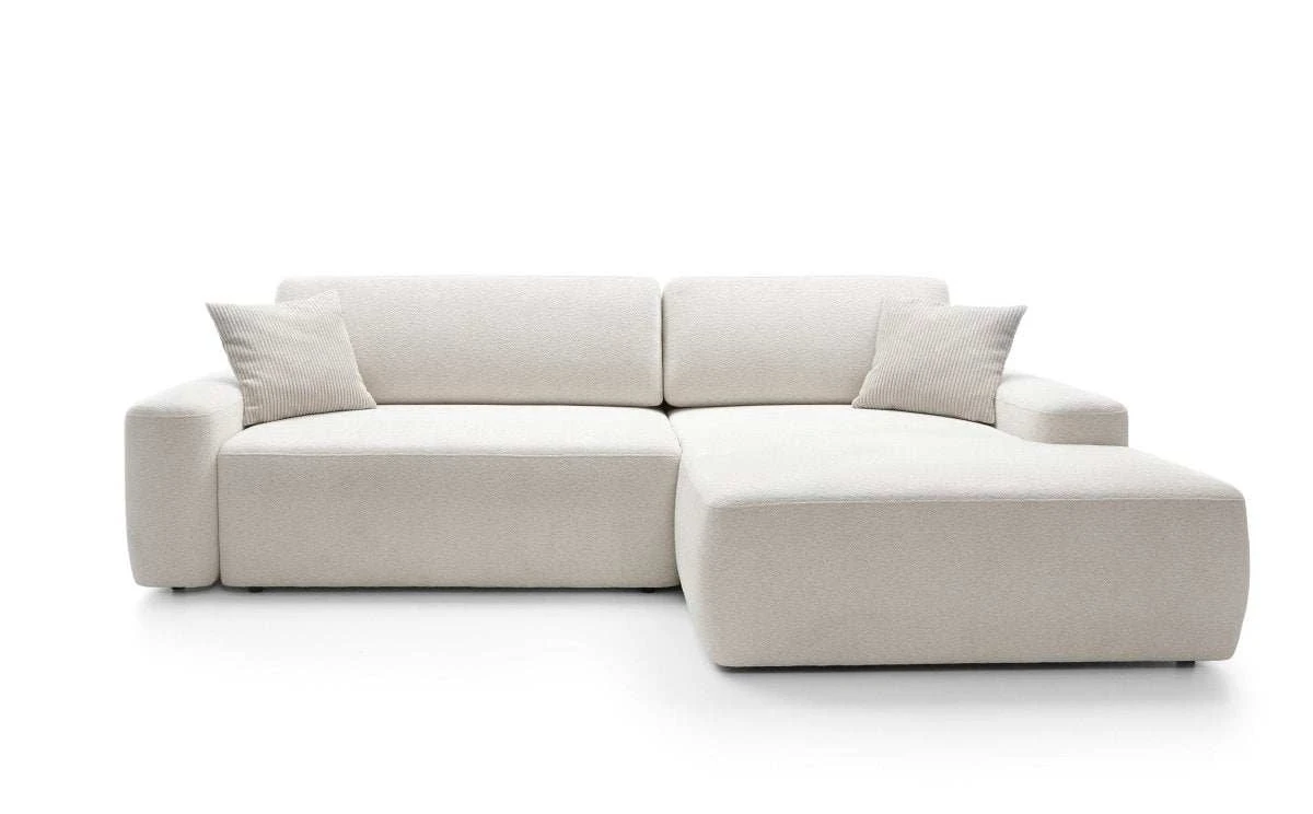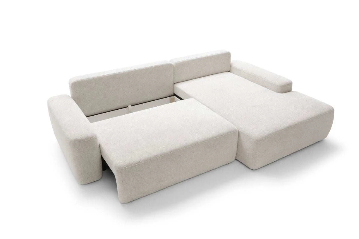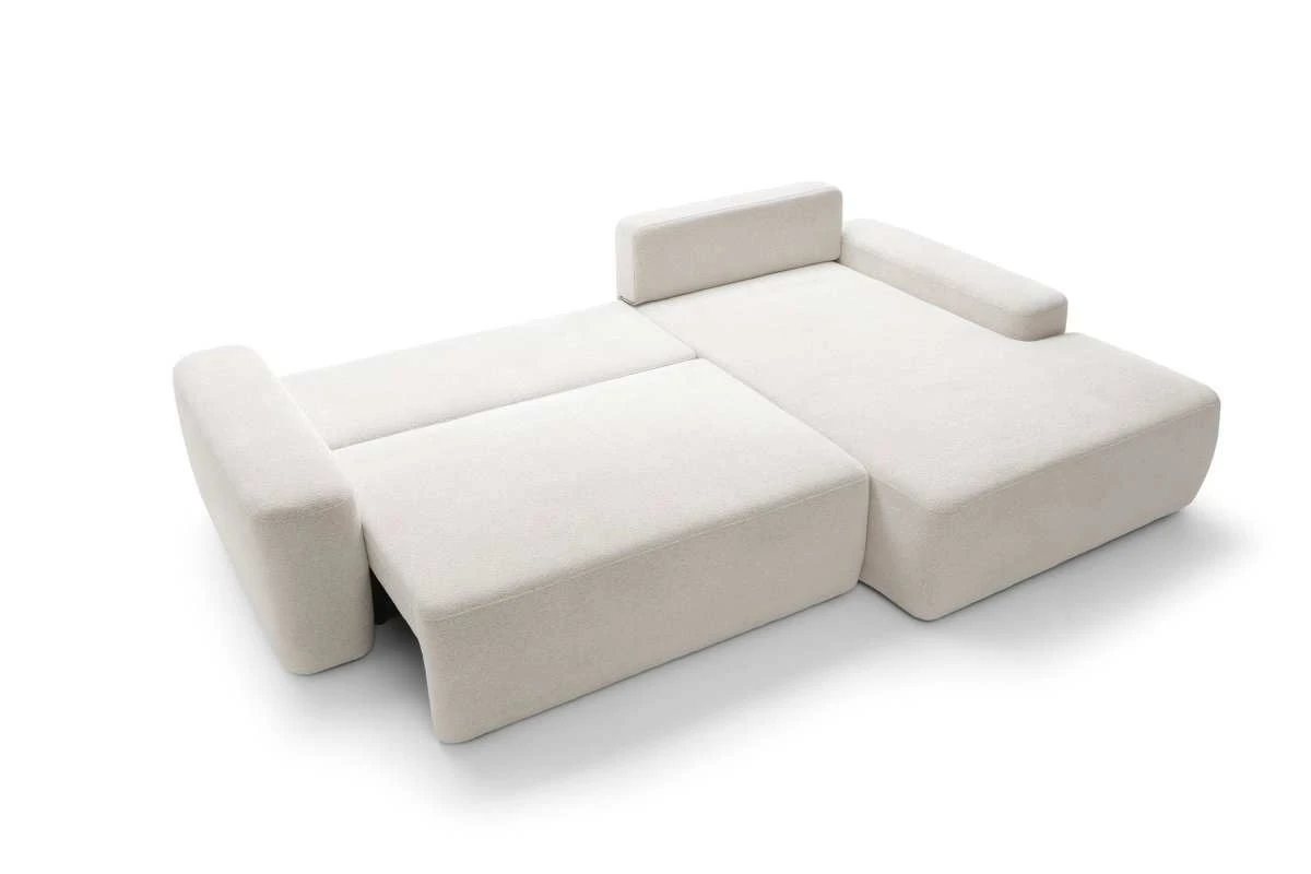 Das Sofa bietet eine praktische Schlaffunktion, mit der Sie es in wenigen Sekunden in ein bequemes Bett umwandeln können. Die L-Form des Sofas bietet ausreichend Sitzmöglichkeiten für Freunde und Familie und schafft eine gemütliche Atmosphäre.
