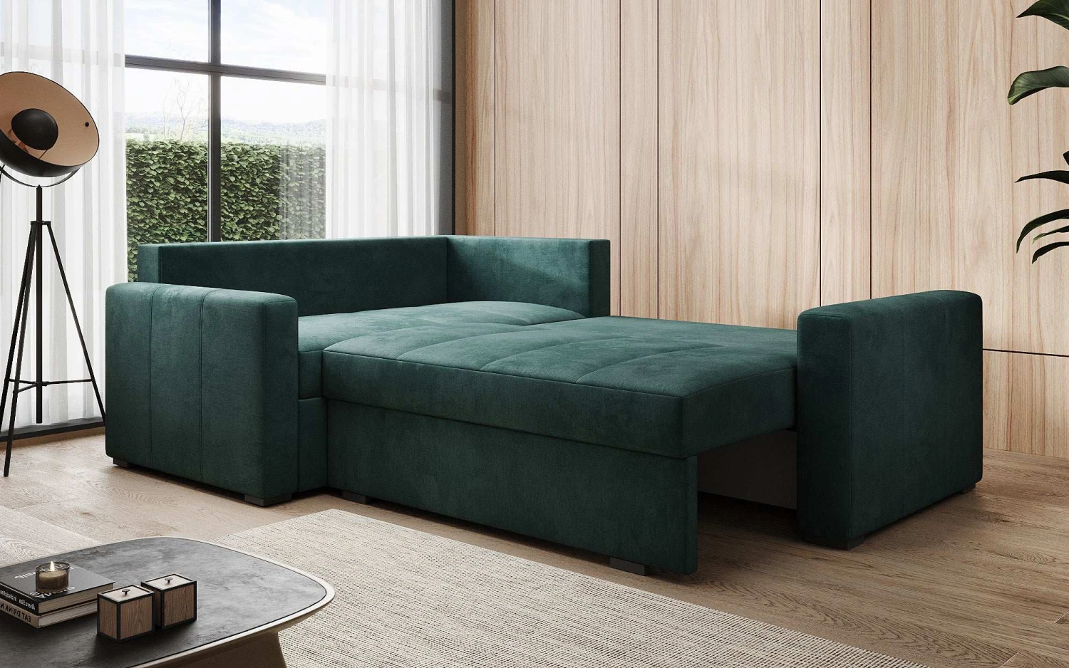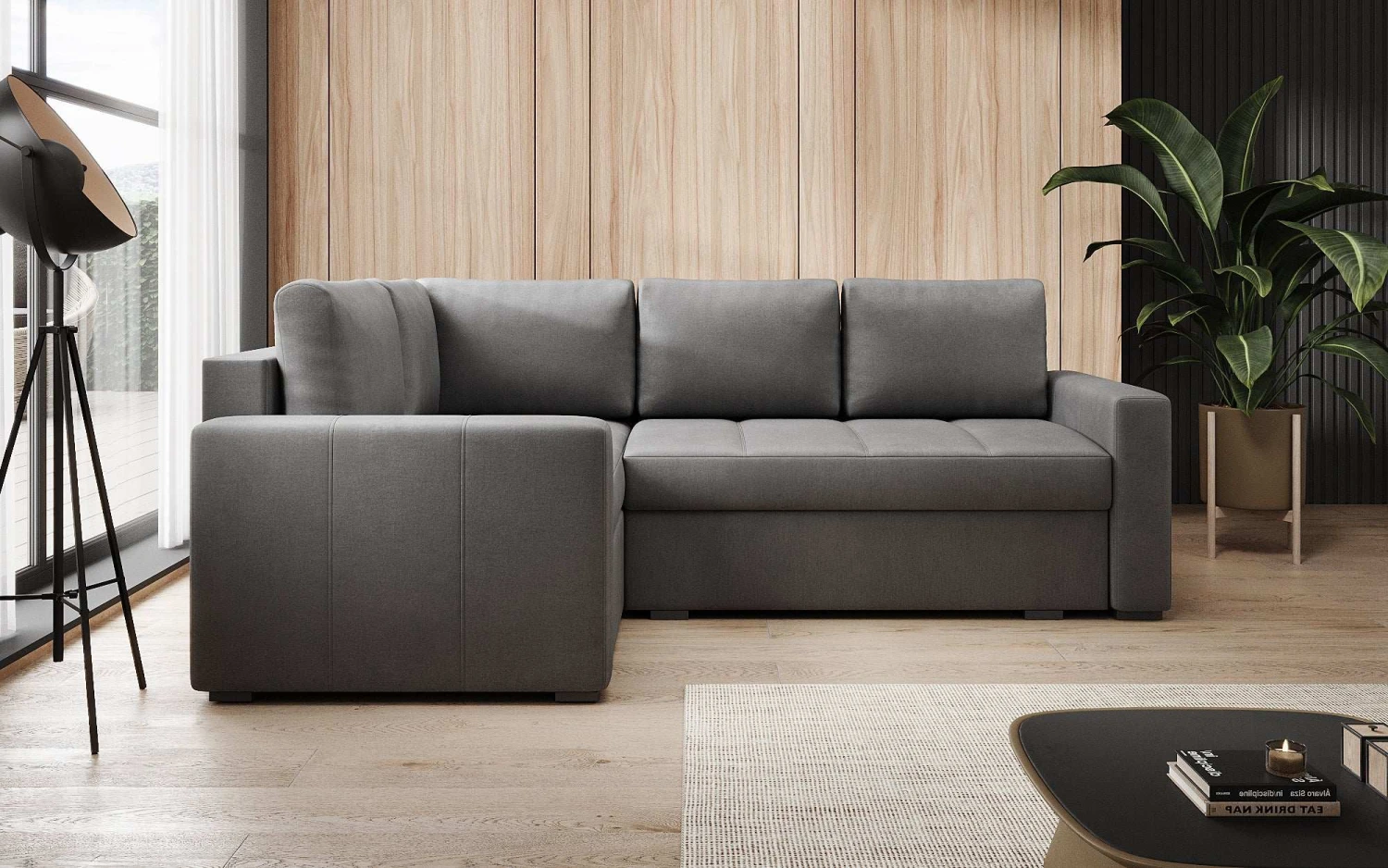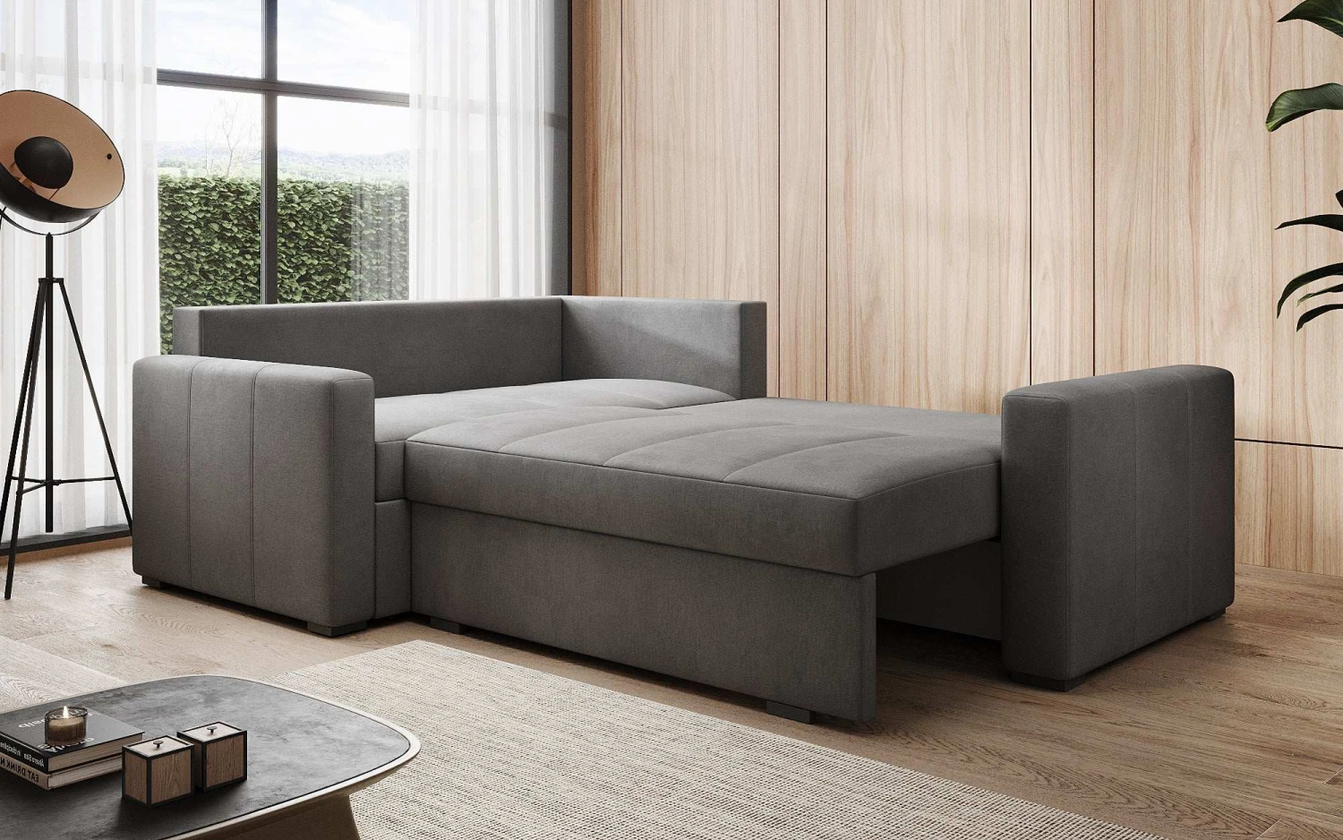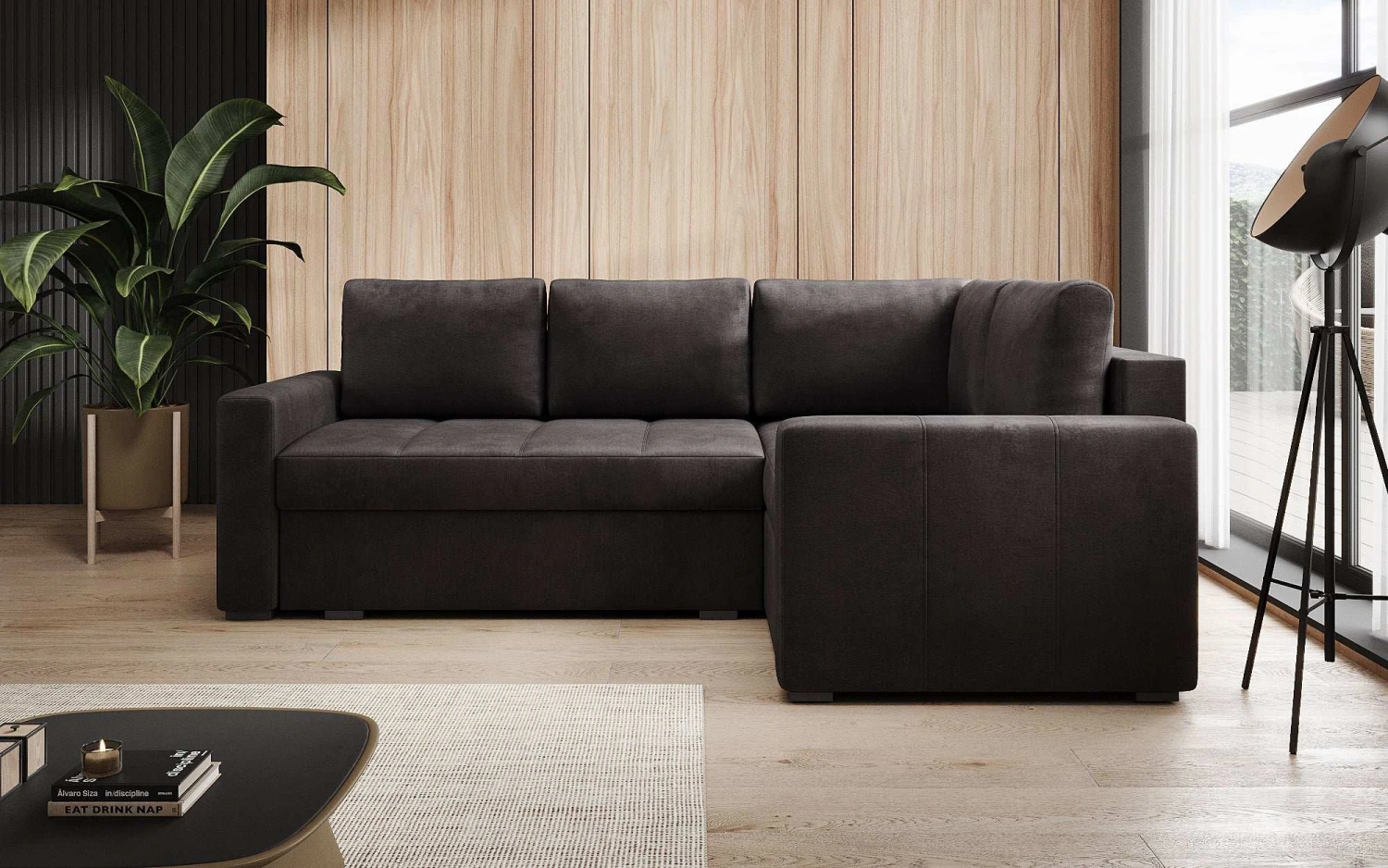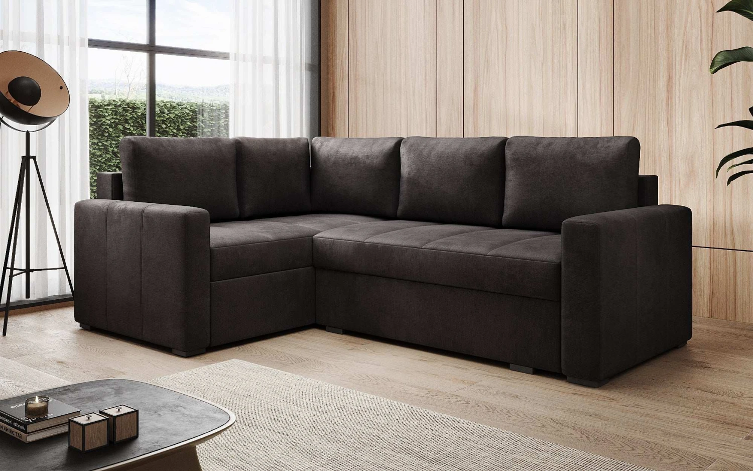 Das Cortino Ecksofa ist ein vielseitiges Möbelstück, das sowohl tagsüber als auch nachts höchsten Komfort bietet. Bei Bedarf kann das Sofa mit dem ausziehbaren Unterboden aufgeklappt werden und bietet eine Liegefläche von 195 x 135 cm sowie einen großzügigen, tiefen Stauraum für Bettwäsche.