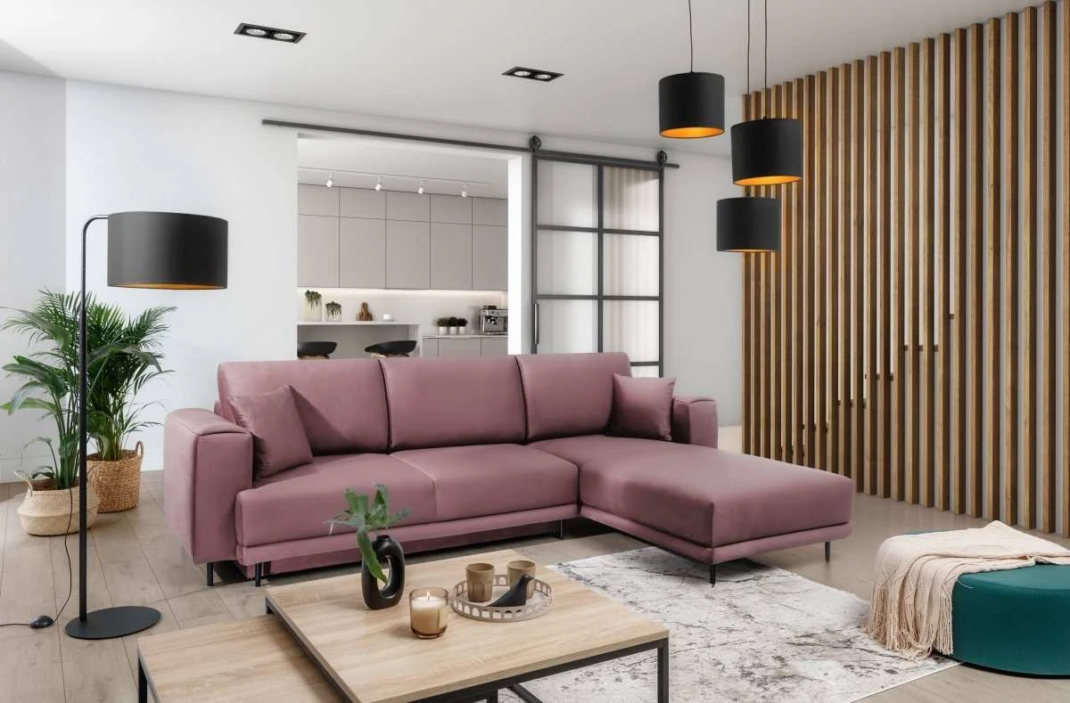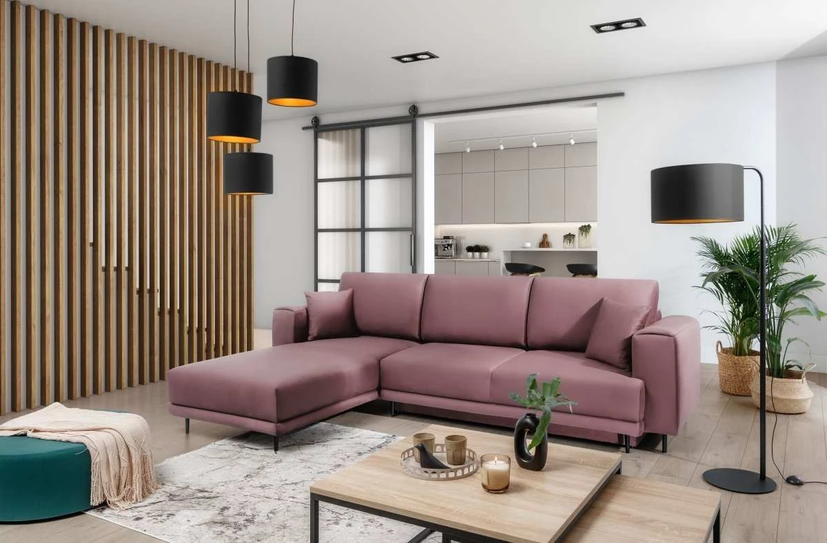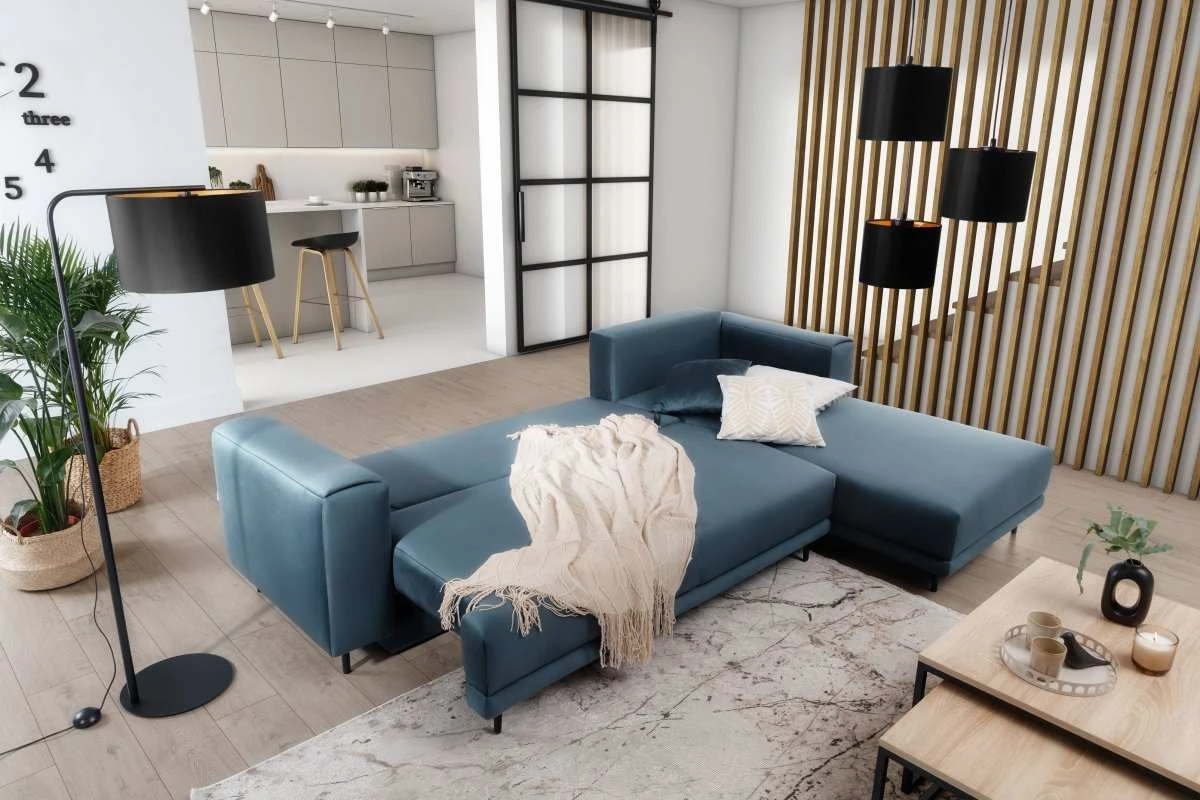 Entdecken Sie das bequeme Ecksofa Dalia, das Ihrem Wohnzimmer Eleganz und Komfort verleiht. Mit hochwertigen Materialien und einer praktischen Schlaffunktion ausgestattet, ist das Dalia die perfekte Wahl für gemütliche Abende zu Hause.